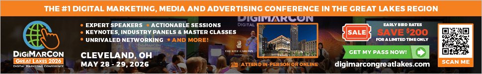 The 7th annual DigiMarCon Great Lakes, the Ultimate Digital Marketing, Media, and Advertising Conference in the Great Lakes, is back May 28th to 29th, 2026 to the luxurious The Ritz-Carlton Cleveland Hotel in Cleveland, Ohio.